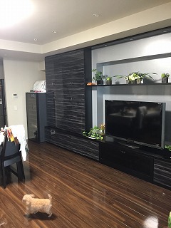 テレビボードは造作家具で、天井や壁に固定されていますので、移動はできません。