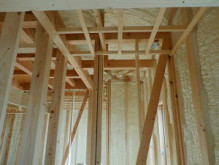 天井にも窓まわりにも、吹き付けの断熱材がびっしり!!