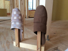 ↓大工の心づかいで、即席のスリッパ立ての完成