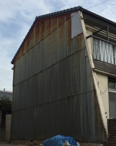 隣家との幅が狭く、風通しが悪かった為に外壁材が錆びていた。