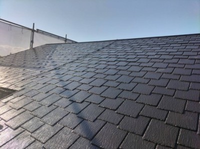 前回の塗装の際は、屋根も外壁も塗装したとのことですが、屋根の塗膜劣化は著しく、早いうちにメンテナンスをした方が良い状態。