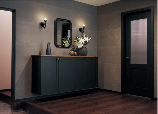 黒のスチールがアクセントになったダイニングテーブルや、棚などのあるお家には、玄関収納は白い扉ではなくマットな黒でコーディネートはいかが?