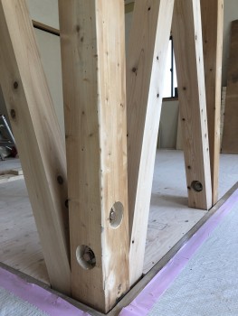 残した柱に強度も持たせるため梁を設け、金物で固定しました。