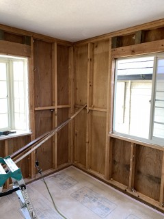 間柱がむき出しの状態になりました。