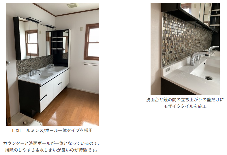 水回りの中でも近年注目度が高い洗面リフォームの事例です。 既製品の洗面台も種類が増えていまして、お値打ちな普通の洗面台から、ホテルのような洗練されたデザインのものまで幅広くあります。 広さや雰囲気に合わせた既製品の選別も、さらにはオーダーで洗面を作ることも可能です。