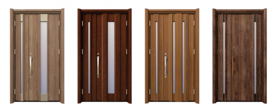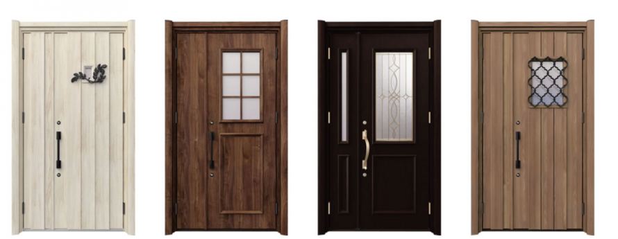 上記のような木目のやわらかい玄関ドアが人気があります。